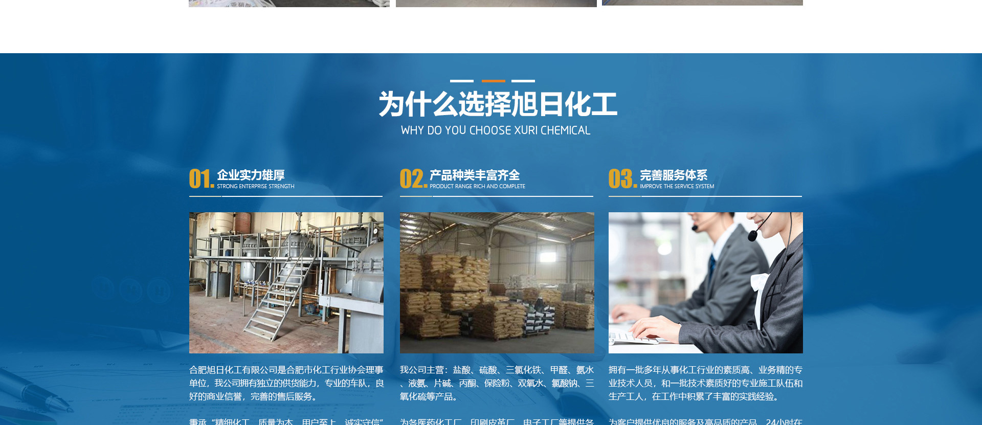 合肥旭日化工有限公司是合肥市化工行業(yè)協(xié)會理事單位,該公司擁有獨立的供貨能力,專業(yè)的車隊,良好的商業(yè)信譽,完善的售后服務。秉承“精細化工、質(zhì)量為本、用戶至上、誠實守信”的企業(yè)理念。從事各類化工溶劑和原料的國內(nèi)貿(mào)易;為各醫(yī)1藥化工廠、印刷皮革廠、電子工廠等提供各種化工原料配套采購。目前,公司正朝著以貿(mào)易為基礎、以實業(yè)為依托,全球采購、全國銷售,內(nèi)外貿(mào)一體化,上下游一體化,具有綜合增值能力和復合競爭能力化工原料供應商。本公司主要經(jīng)營的產(chǎn)品有:鹽酸、硫酸、三氯化鐵、甲醛、氨水、液氨、片堿等。合肥旭日化工有限公司為客戶提供優(yōu)良的服務及高品質(zhì)的產(chǎn)品,本公司經(jīng)銷的各種產(chǎn)品不僅在安徽地區(qū)深受用戶好評,而且具有很高的市場占有率,產(chǎn)品行銷全國各地區(qū)。
